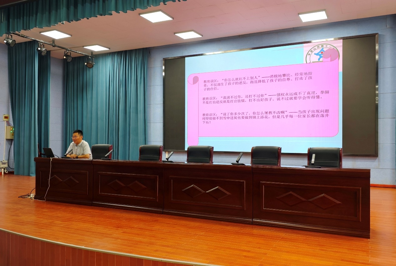 政教主任陈贯磊为初一新生家长开展专题讲座